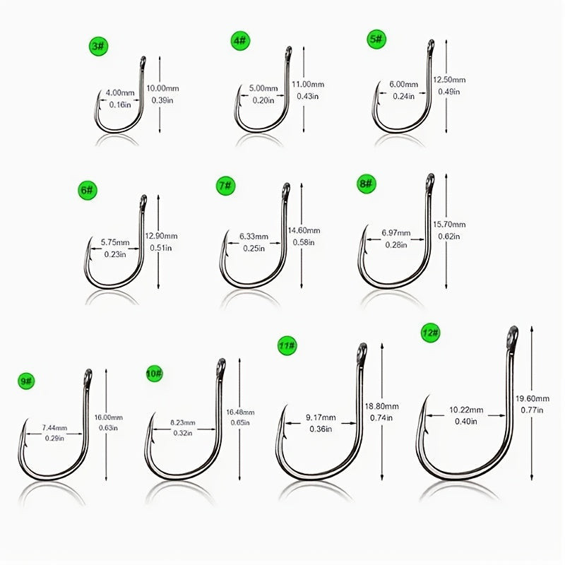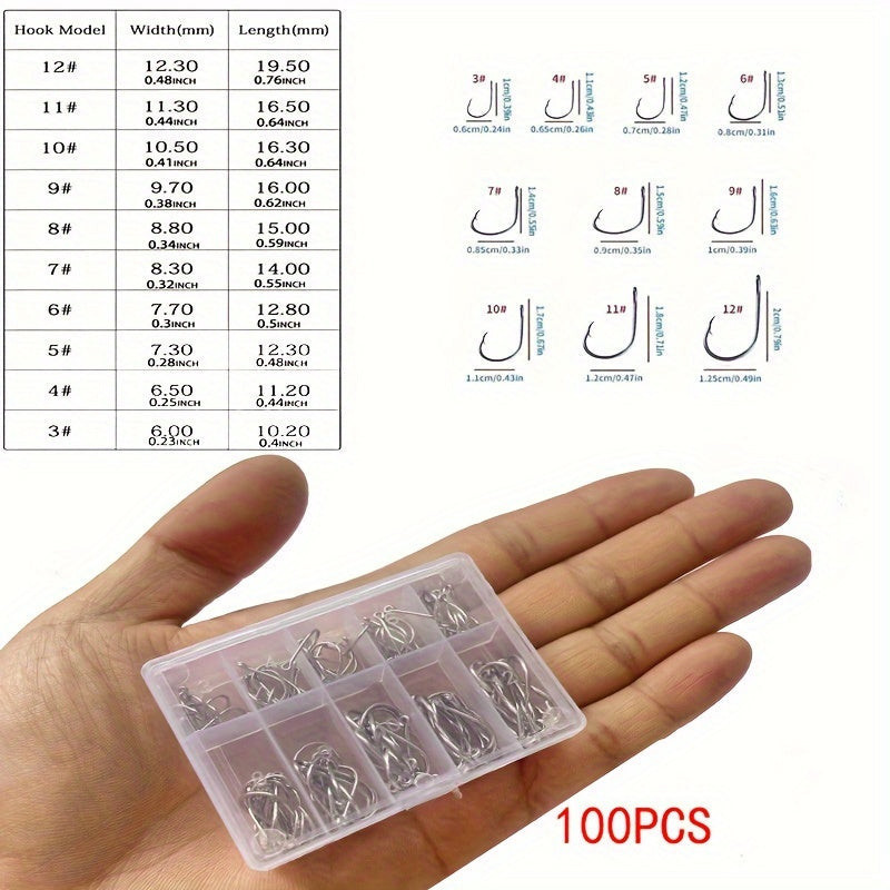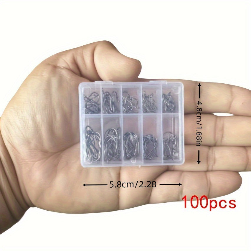 (Mennyiség) 100 darabos szett: Ez a szett 100 különböző méretű horgot tartalmaz, így bármilyen horgászati helyzetre fel vagy készülve.