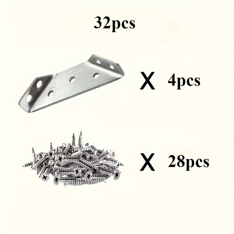 32 darabos Erős Rozsdamentes Acél Sarokmerevítő Készlet