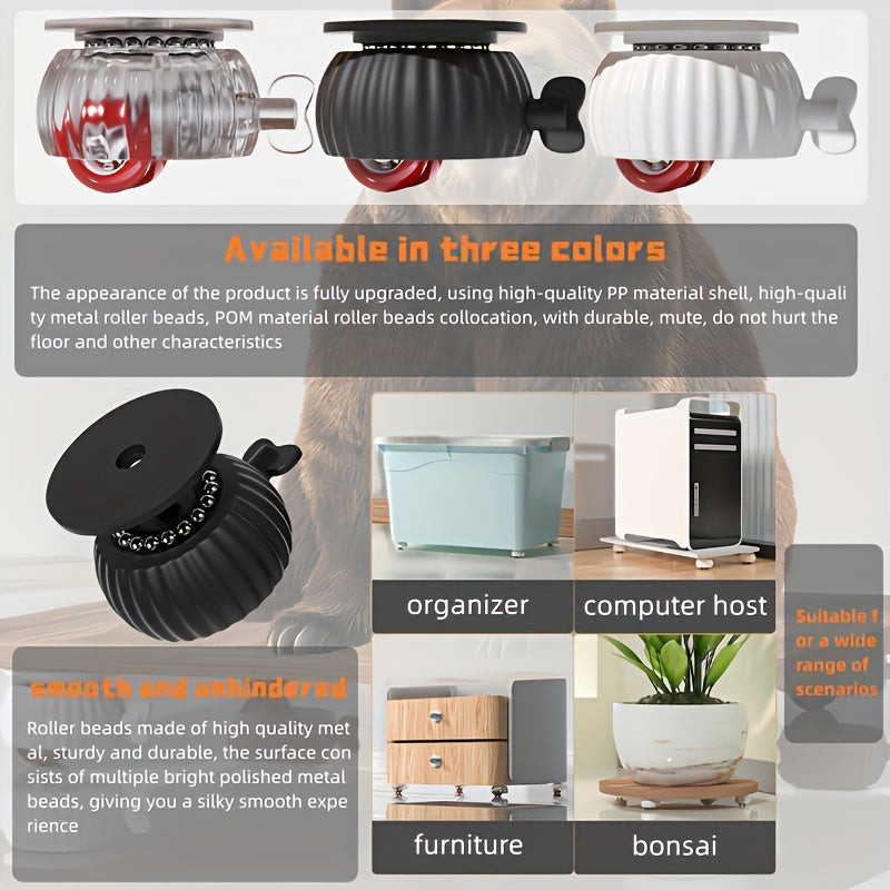 (Könnyű mozgathatóság) A görgők 360 fokos forgást biztosítanak, így a bútorok mozgatása sosem volt ilyen egyszerű és gördülékeny.
