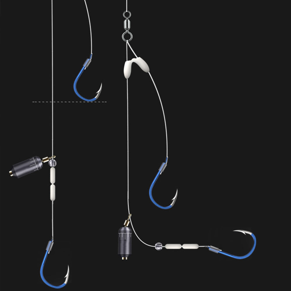 (Horgok) Dupla horog kialakítás: A kétágú horog biztosítja, hogy a halak ne tudjanak könnyen elmenekülni, így növeli a fogási esélyeidet.