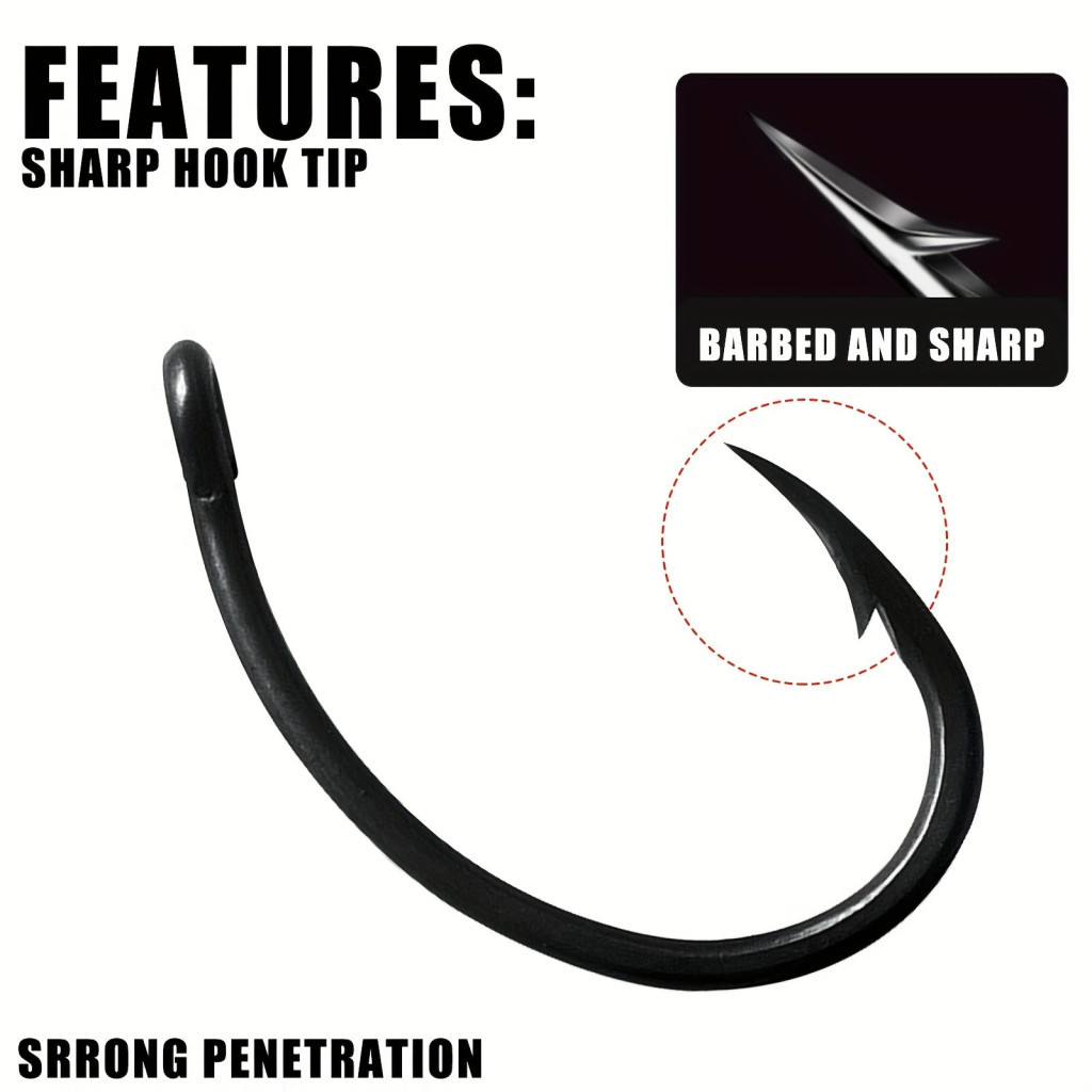 (Tervezés) Éles kialakítás: A horog éles hegye garantálja, hogy minden kapásnál biztosan megfogja a halat, minimalizálva a lecsúszás esélyét.