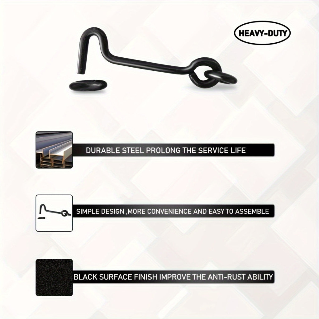 (Tökéletes választás) Az elegáns és minimalista dizájnjának köszönhetően ez a retesz bármely környezetbe könnyedén beilleszthető, legyen szó modern vagy hagyományos stílusról. A praktikus kialakítás lehetővé teszi a könnyű kezelhetőséget, így mindenki számára egyszerűen használható. Ne hagyd, hogy a biztonság kérdése fejtörést okozzon; válaszd a szénacél ajtókampó reteszt, és élvezd a nyugalmat!