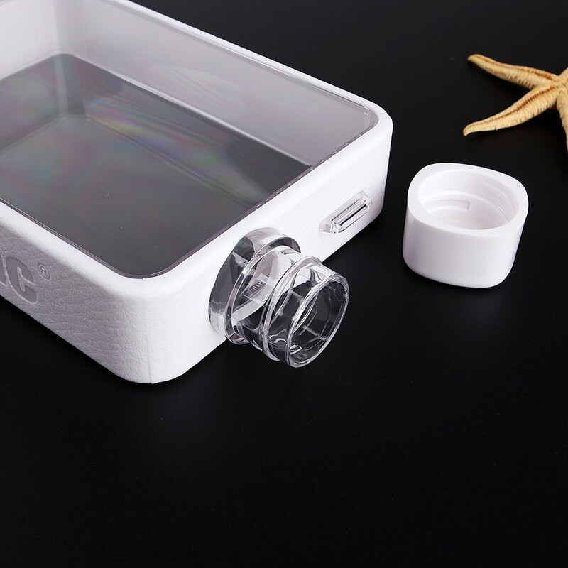 Az átlátszó anyagnak köszönhetően az üveg elbűvölő és játékos műalkotássá válik, ami arra is ösztönöz, hogy növeld a napi vízbevitelt. A tetején egy ivókupak segíti, hogy ne öntsd le magadat.