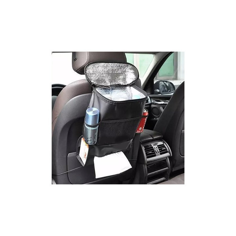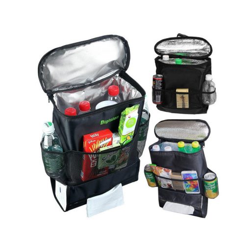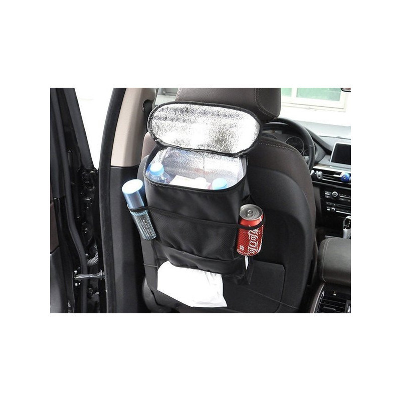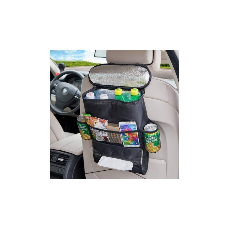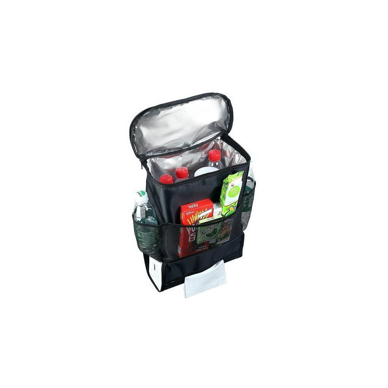 Szuper praktikus autós ülés rendező, ami egy hűtőtáskával van felszerelve, és azzal a céllal készült, hogy az első autós ülések hátuljára illeszkedjen. Ideális azért, hogy rendet tarts az autódban, tökéletes hely a térképek, italok, ételek, tollak, gyerekjátékok és különféle apró dolgok tárolására.