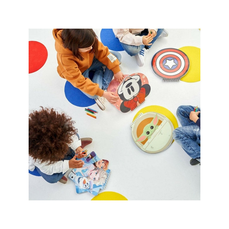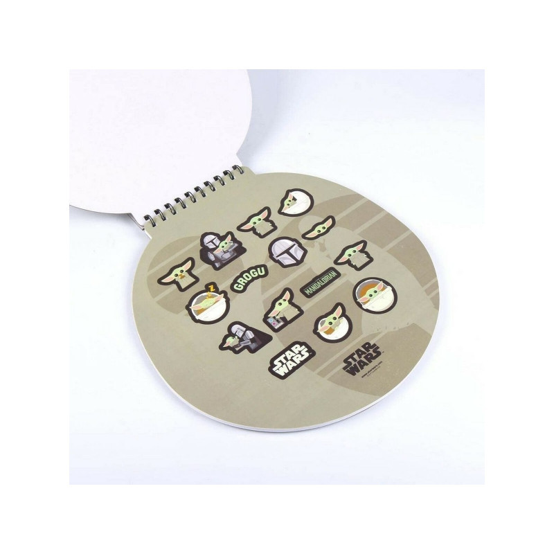 A Baby Yoda mintás füzet belseje sima, így semmi nem korlátozhat a rajzolásban. Tartalmaz még matricákat, amik a figurát ábrázolják.