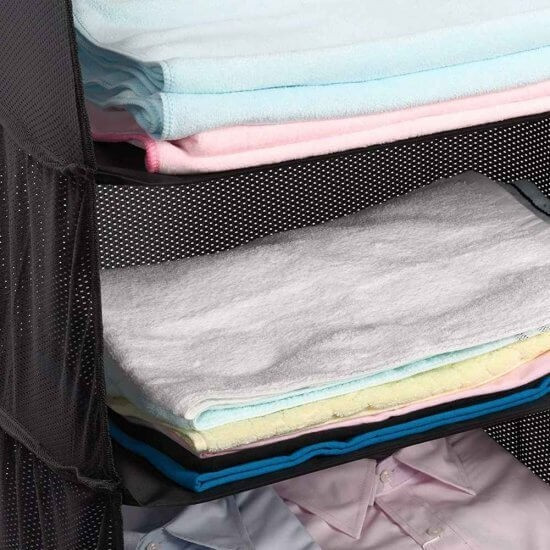 Sőt, a polcok mivel megtartják a ruhákat, így nem fognak összegyűrődni. A két kampó segítségével nyugodtan felakaszthatod a szekrénybe.