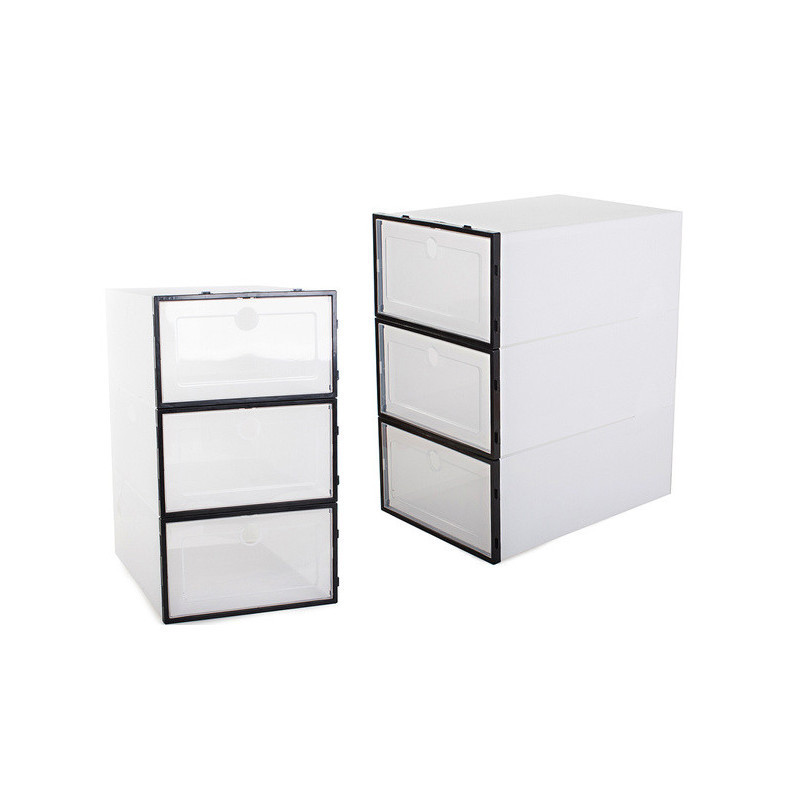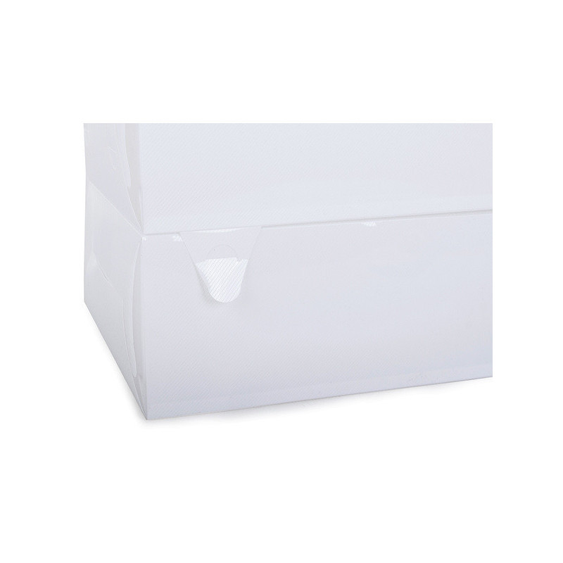 Szereted a rendet és a tisztaságot a szekrényedben? Akkor ezt a cipőtartó dobozt imádni fogod! Az organiser segít kihasználni a szekrényed vagy öltöződ helyét, és rendben tartani a dolgaidat. A dobozok moduláris szekrényt alkothatnak, bármilyen alakban, amely megfelel az igényeidnek és a szoba méreteinek. A dobozok tökéletesek hosszú távú tároláshoz, és szellőzőnyílásokkal vannak ellátva a levegő keringéséhez. Az organiserek bárhol elhelyezhetők, és tökéletesek játékok, kacatok, sapkák, sálak, kozmetikumok stb. tárolására. Az átlátszó doboznak köszönhetően nem kell keresgélned a cipőidet, mert láthatod őket a fedeles részen keresztül. Használaton kívül a doboz laposan összehajtható.
