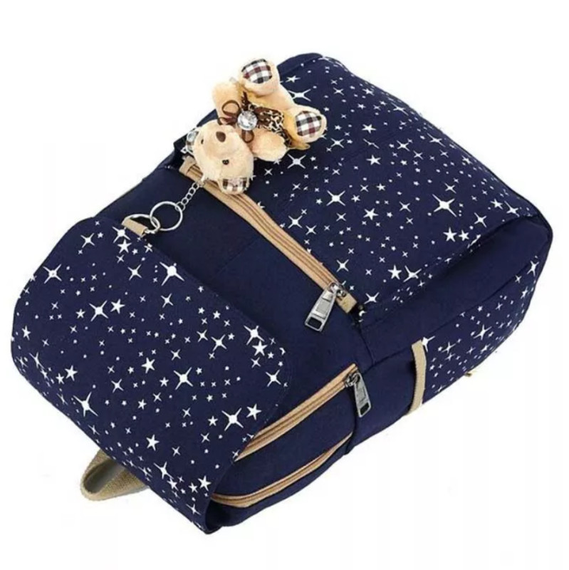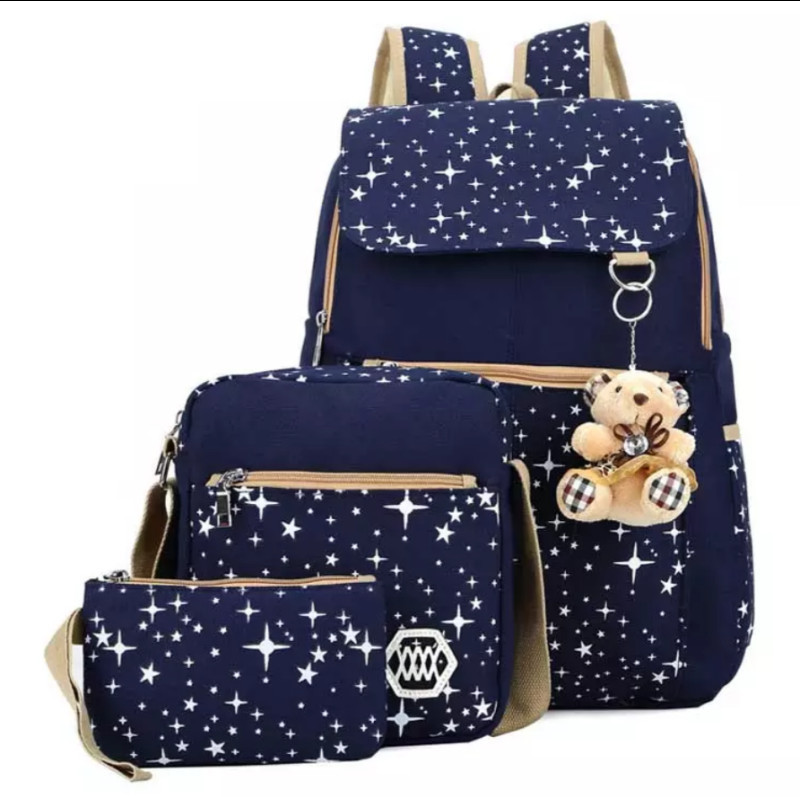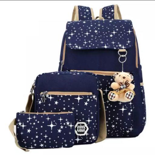 Magába foglal egy hátizsákot, egy oldaltáskát, hogy mindig a megfelelő nagyságú táskával induljon útra a gyermeked. Valamint, még egy neszesszer táskát is, amelyben minden szükséges dolgot elbír, amely a testnevelés órák után, valamint a délutáni edzések, foglalkozások után szükséges lehet a számára.