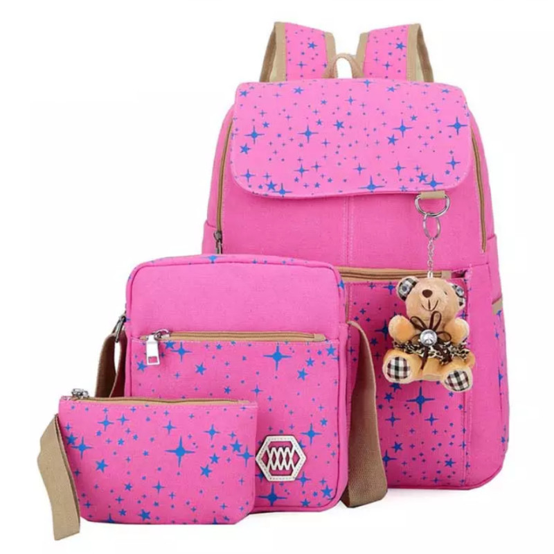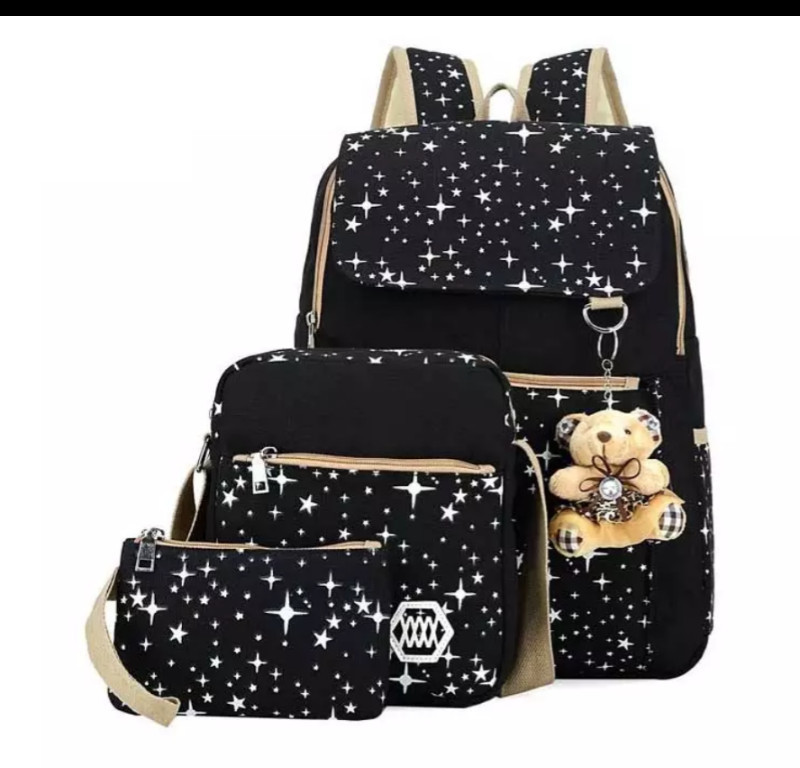 Magába foglal egy hátizsákot, egy oldaltáskát, hogy mindig a megfelelő nagyságú táskával induljon útra a gyermeked. Valamint, még egy neszesszer táskát is, amelyben minden szükséges dolgot elbír, amely a testnevelés órák után, valamint a délutáni edzések, foglalkozások után szükséges lehet a számára.