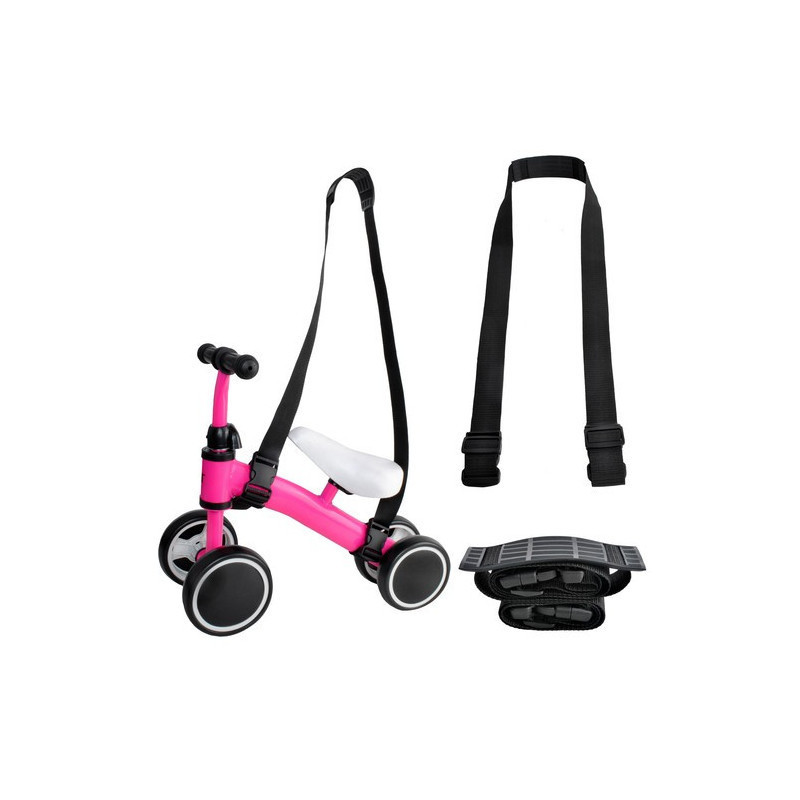 Az öv főként futóbicikli vagy roller szállítására készült, de ez még nem minden! Használhatod arra is, hogy húzd a gyerkőcöt, ha elfárad. Csak rögzítsd az egyik végét a járműhöz, a másikat pedig fogd meg. Télen pedig tökéletes szánkóhúzóként is funkcionál! Sőt, a járművet akár fel is akaszthatod vele a garázsban vagy a pincében.