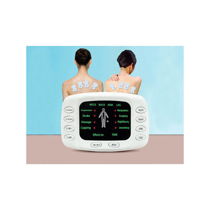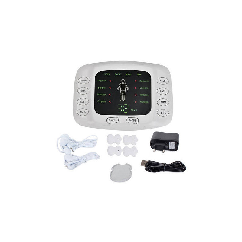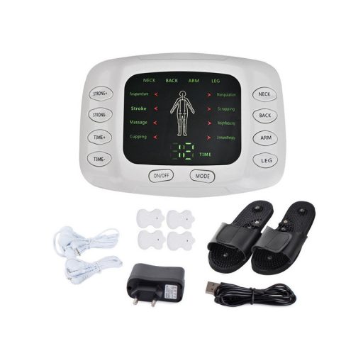 Az elektrostimulátor az izmok és idegek masszírozására szolgáló terápiás eszköz, amely otthoni használatra lett tervezve. A készülék használható sportban, rehabilitációban, testápolásban és szépségápolásban. A készülék elemekkel vagy hálózati tápellátással is működtethető a mellékelt kábel és tápegység segítségével. Hatékony a zsír csökkentésében és a cellulit eltávolításában. Segít a fájdalom kezelésében is. Az elektrostimuláció rendkívül hasznos a sok sérülésből való felépülés szempontjából. Az atléta is értékeli a készüléket a javított regeneráció és a fájdalom és izomláz megszüntetése miatt, ami nagyon bosszantó lehet egy edzés utáni napon. A készülék bekapcsolása előtt az elektródákat fel kell ragasztani a testre. A készülék intenzitás beállításokkal rendelkezik 1-15 között és masszázs időtartam beállításokkal 5-30 perc között. A szett tartalmaz egy pár papucsot, amelyek láb elektrodaként működnek, így fáradt lábakat is masszírozhatunk egy fárasztó munkanap után.