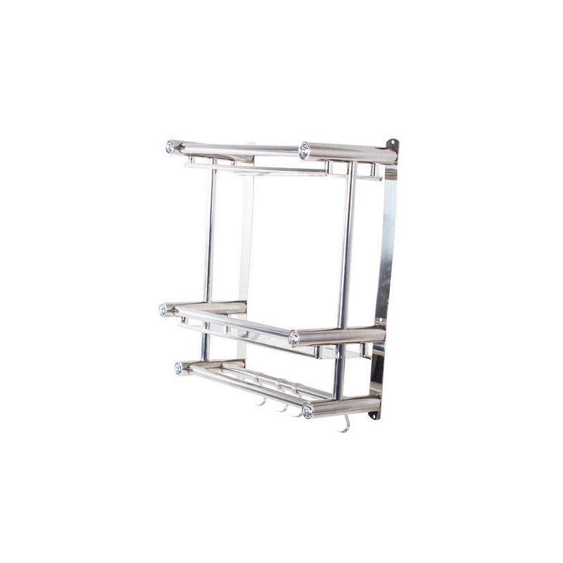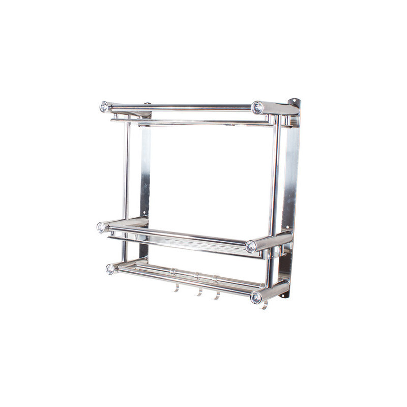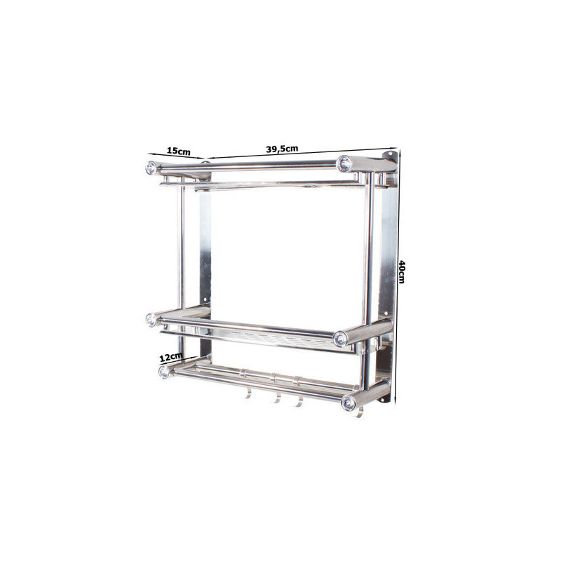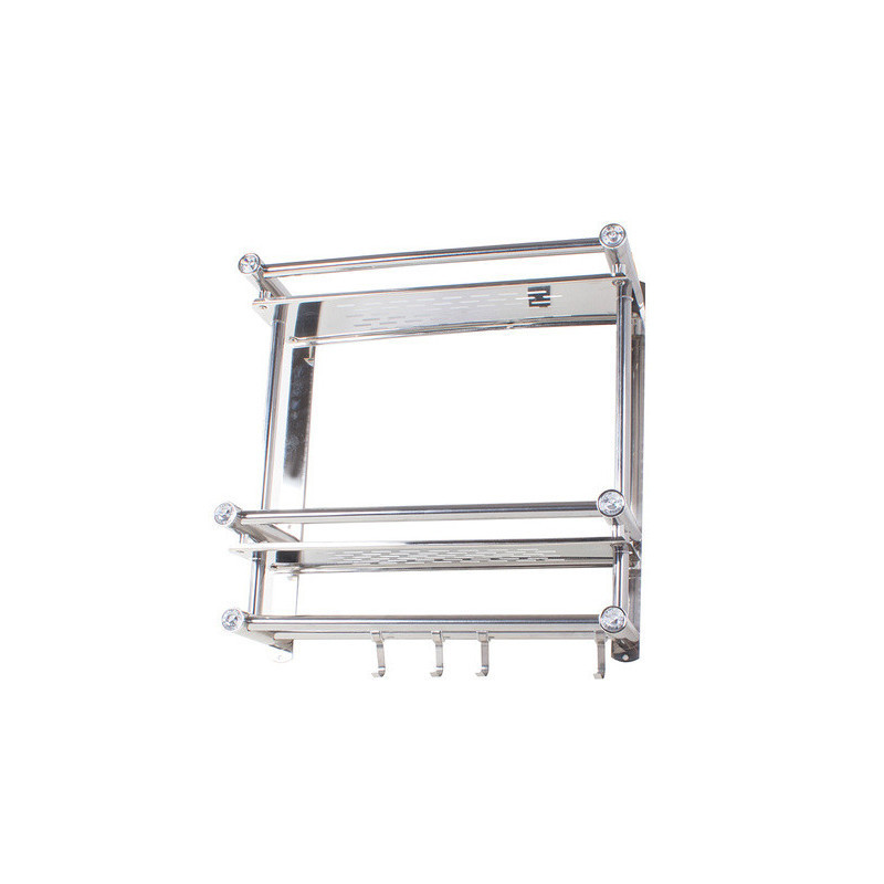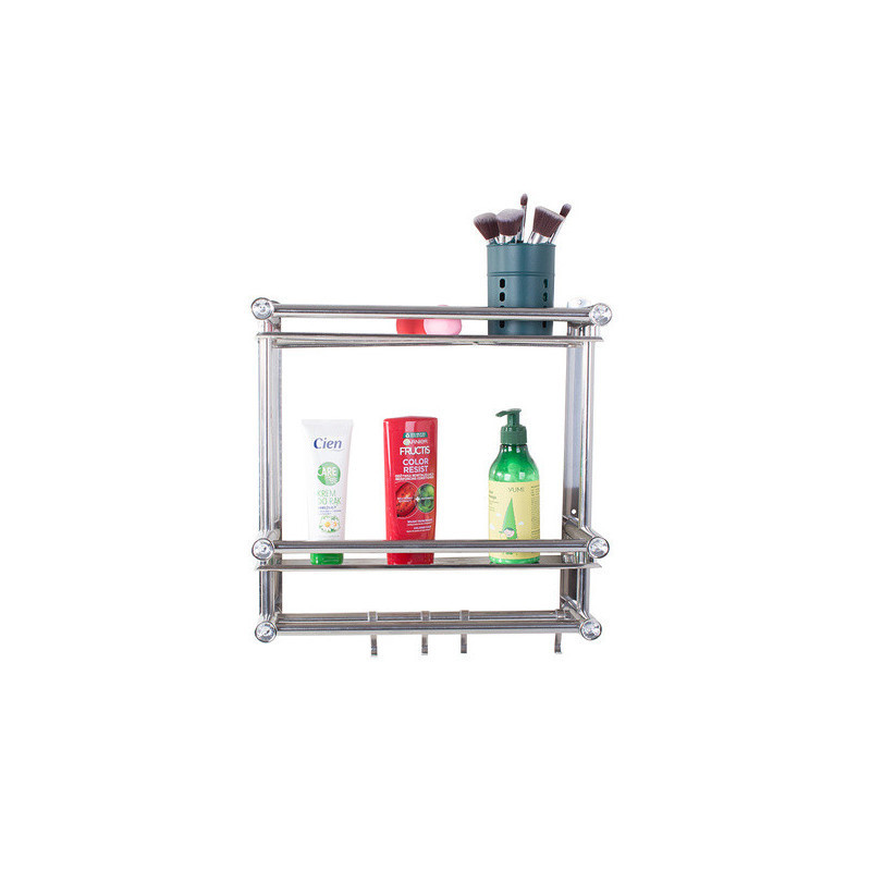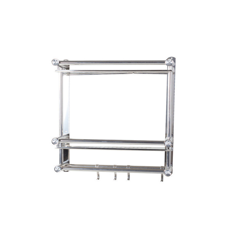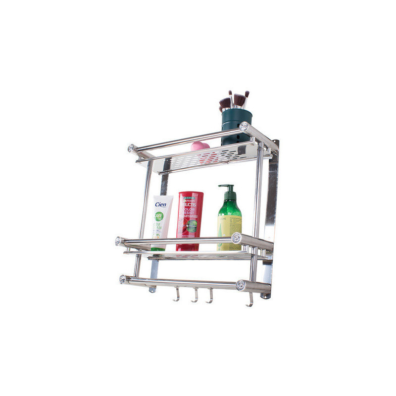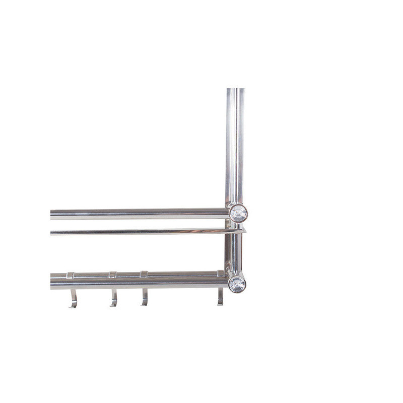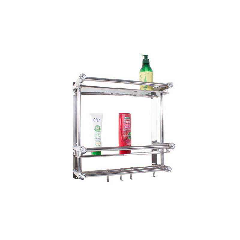 A univerzális függő polc ideális megoldás a fürdőszoba rendben tartására. A szervezőnek két magas polca van, így oda tudsz tenni magas dolgokat. A polc alján 4 akasztó van, amire fel tudod akasztani a törölközőidet. A polc modern designnal rendelkezik, és tökéletesen illeszkedik bármely fürdőszobába. Minden polc elején beépített műgyémántok vannak, amik előkelő megjelenést kölcsönöznek.