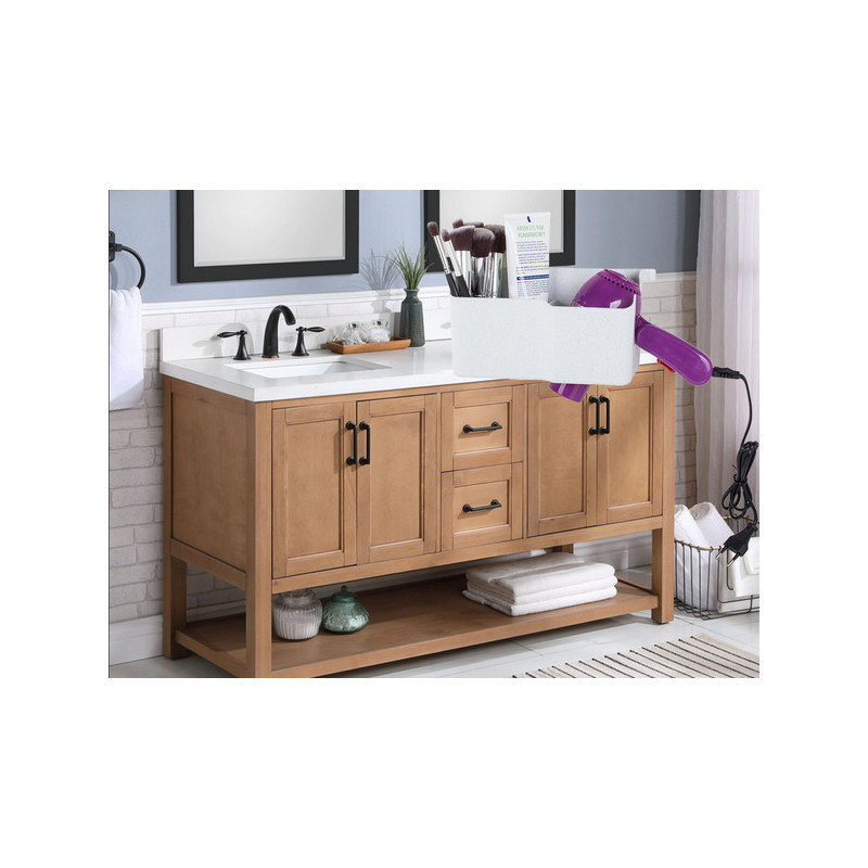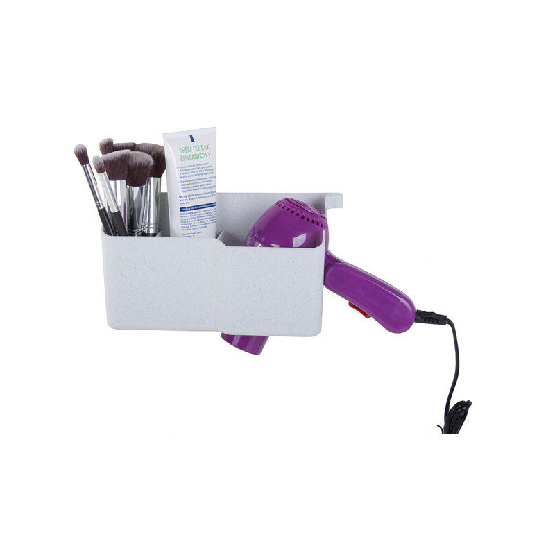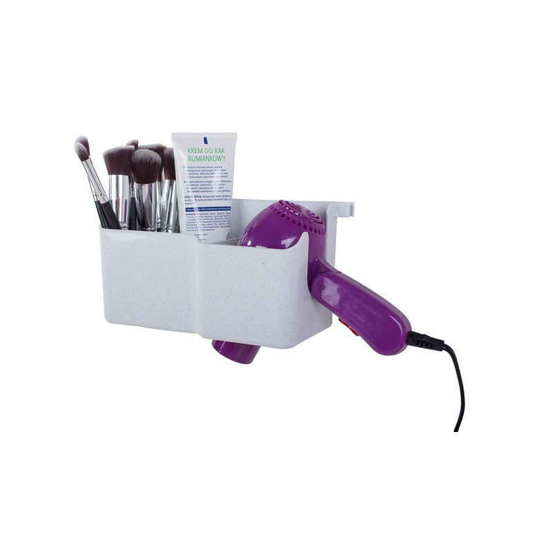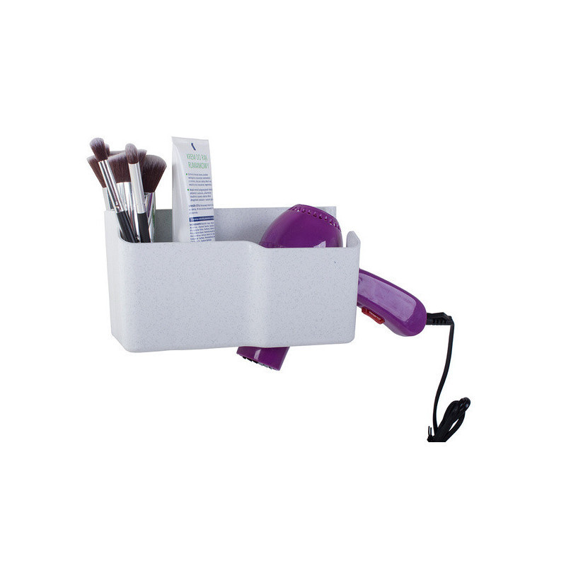 A fali hajszárító tartóval helyet takaríthatsz meg a fürdőszobádban. Ez a tartó kábel tartóval van felszerelve, 3 kiegészítő rekeszt különféle kozmetikumok vagy kiegészítők számára, valamint 2 további kis akasztót, például hajgumik vagy egy flanelle számára. A tartó alján lévő nagy lyuknak köszönhetően könnyen illeszkedik a legtöbb hajszárítóhoz.