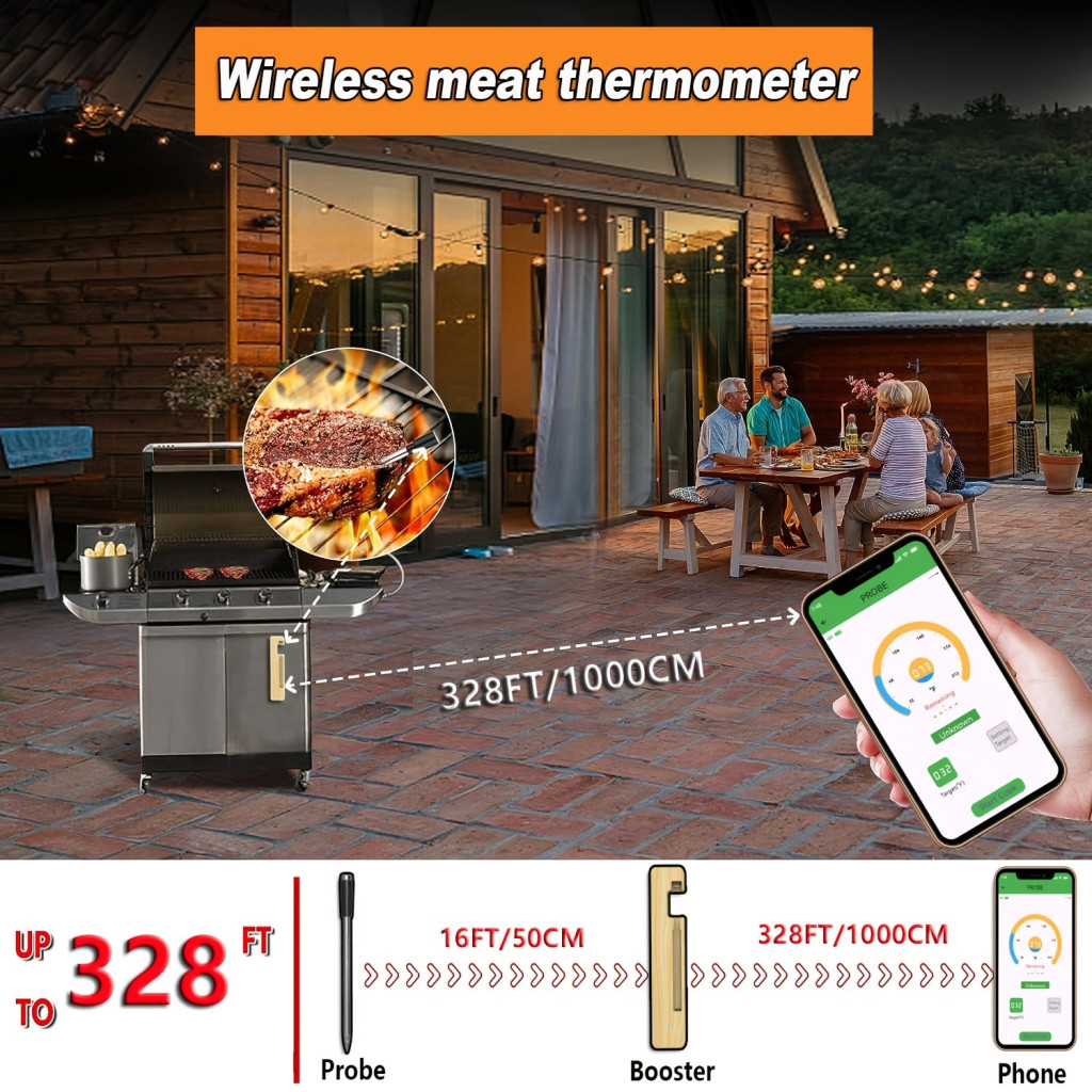 (Hatótáv) A hőmérő akár 50 méteres hatótávval rendelkezik, így szabadon mozoghatsz a konyhában vagy a kertben, miközben a sütés folyamatát távolról is nyomon követheted.
