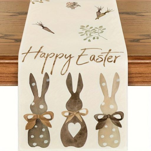 (Különleges húsvéti hangulat) Varázsolj ünnepi hangulatot az otthonodba ezzel a húsvéti nyuszi és sárgarépa mintás poliészter asztali futóval! Ez a bájos kiegészítő nemcsak a húsvéti asztal dísze lehet, hanem a tavaszi szezon minden napján feldobja az étkező vagy a nappali hangulatát. Az élénk színek és a részletes minták biztosítják, hogy minden vendéged elámuljon az asztalod látványától. A poliészter anyag tartóssága és könnyű kezelhetősége miatt ez az asztali futó nemcsak szép, hanem praktikus is.