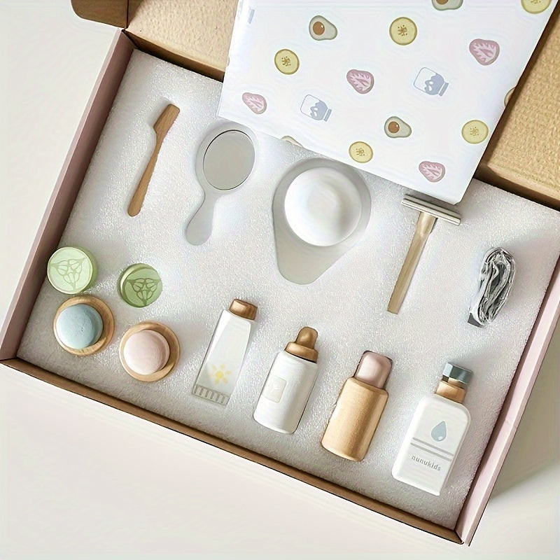 (Kreatív játék) Fából készült sminktermékek és bőrápoló eszközök, amelyek valósághű megjelenést biztosítanak.