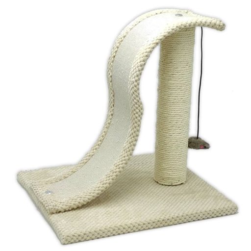 S alakú kialakítása nem csak a rendelkezésre álló felületet növeli meg, hanem akár a kölyök cicák számára is élvezhető játszóteret nyújt, könnyen és biztonságosan mászhatnak, játszhatnak rajta. A legmagasabb pontjáról egy rugalmas szállal felfüggesztett, csörgő, plüss egér lóg le, mely ideális játék, és a cica ösztöneit is fejleszti. A kaparófa valamennyi alkatrésze burkolt, a talp és az S alakú panel szélei puha plüss borítást kaptak, az S panel közepe sűrű szövésű, ellenálló anyaggal van fedve, míg az oszlopon szizál kötél található sűrűn feltekerve.