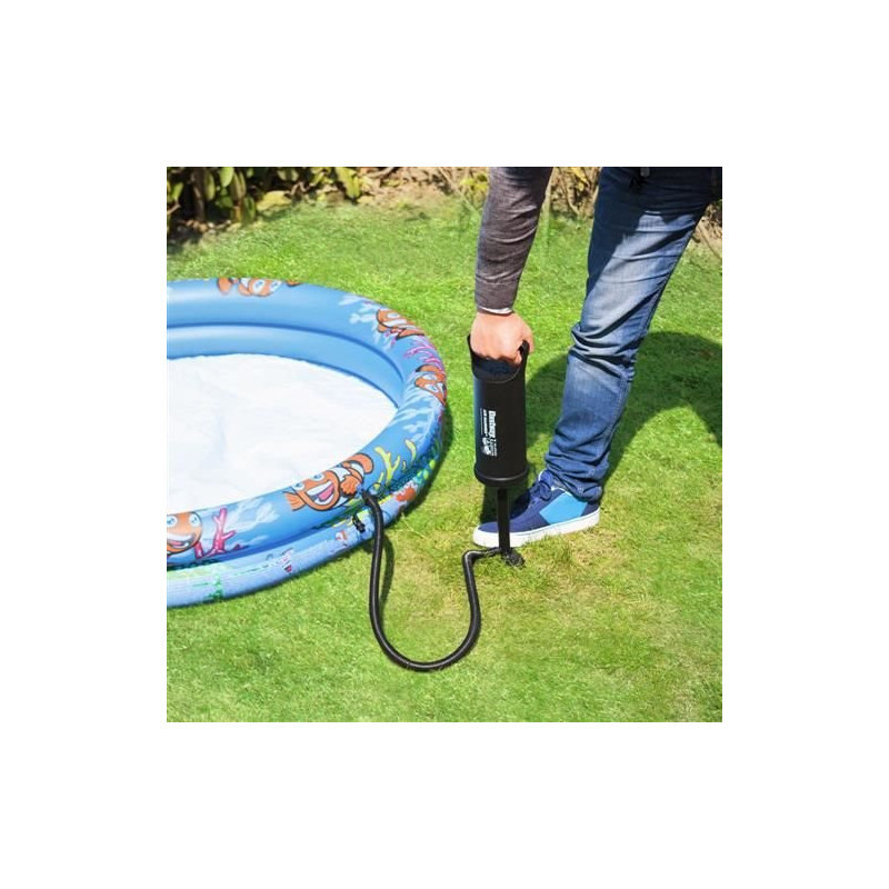 - A hosszú tömlőnek köszönhetően kényelmesen, hajolgatás nélkül pumpálhatsz. Csak állj rá a pumpa alján található lábtartókra, és máris indulhat a felfújás!