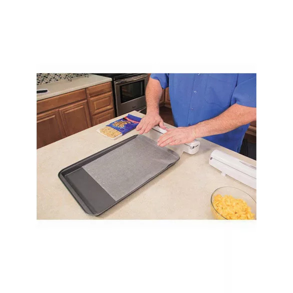 A konyhai fóliavágó egy fantasztikus eszköz, amely minden konyhában hasznos lehet. Ezzel könnyedén levághatod az élelmiszer csomagoló fóliát, reggeliző fóliát vagy alumínium fóliát egy mozdulattal. A vágó éles vágópengékkel rendelkezik, amelyek rozsdamentes acélból készültek, és mozgatható hengerrendszerrel, amelybe a kiválasztott fóliát helyezed. Nagyon könnyű használni, csak le kell nyomnod, hogy levágd a szükséges fóliadarabot. Az adagolónak elegáns a designja, így díszíteni fogja a konyhádat, és átlátszó nyílással rendelkezik, hogy ellenőrizhesd a fennmaradó fólia mennyiségét, anélkül, hogy ki kellene nyitnod az adagolót.