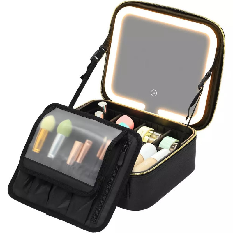 Ez a táska nemcsak hogy minden szükséges szépségápolási termékedet kényelmesen tárolja, hanem a beépített tükörnek köszönhetően bárhol és bármikor könnyedén sminkelhetsz vagy igazíthatod a frizurádat.