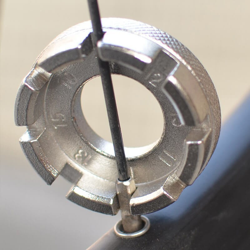 Mivel ötféle küllőanya méret van a kulcson, könnyen megigazíthatod a kilazult küllőidet.