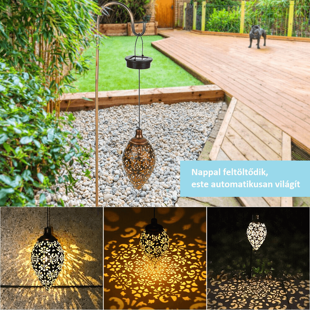 Este félsz a sötétben? Szeretnél éjszakánként egy kis dekorációt a kertedben? Itt egy kültéri lámpa, amely éjszakánként akár 8-10 óráig is képes világítani, meleg és nyugodt környezetet biztosítva maga körül. Helyezzük olyan helyre, ahol nappal kb. 6 órán keresztül a napon lehet és este a túl erős lámpáktól messze. Ezeket betartva akár bárhova tehetjük a kertben, ahol esténként túl nagy a sötétség. Ellenáll mindenféle időjárási körülménynek, rendkívül strapabíró anyagból készült. Felesleges kábelek és ki- be kapcsolás nélkül élvezhetjük a fényét.