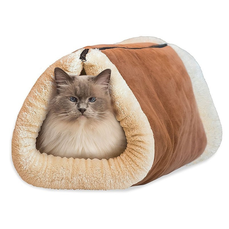 Széthajtva széles fekhelyként szolgál, összecipzározva pedig tökéletes rejtekhely cicád számára.