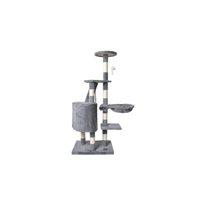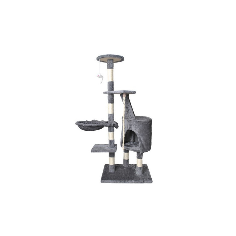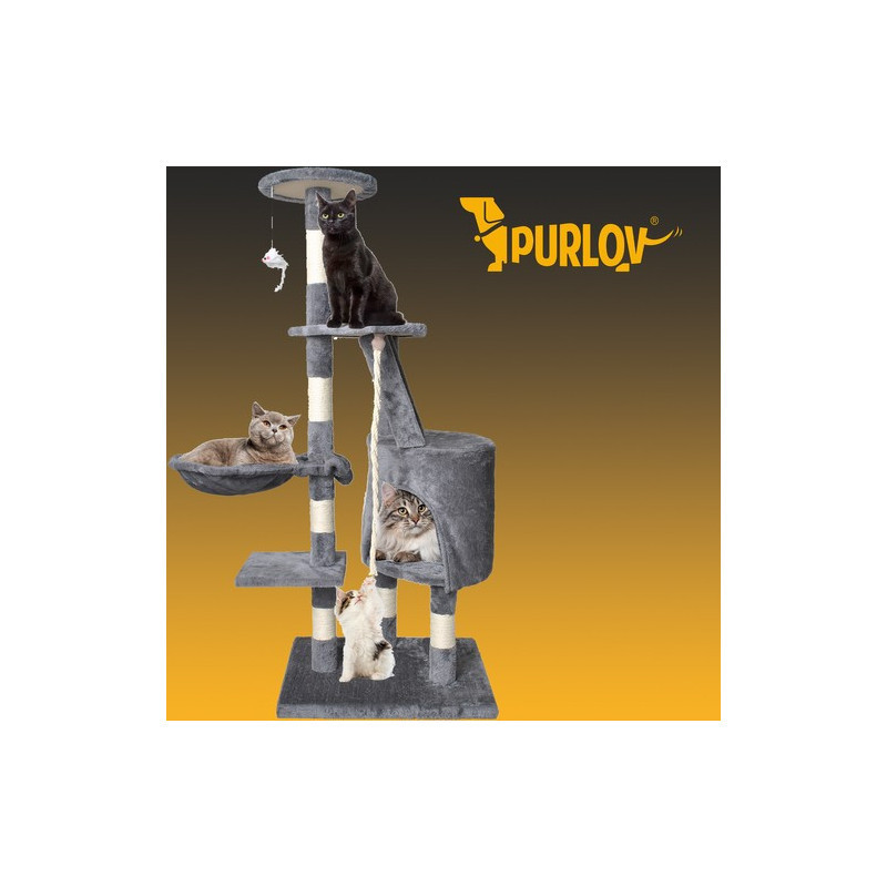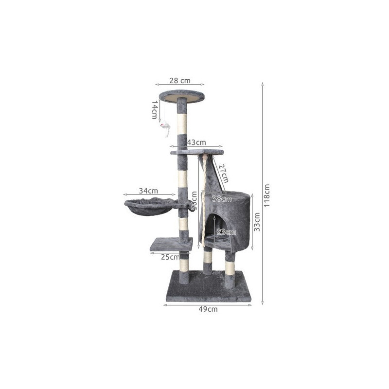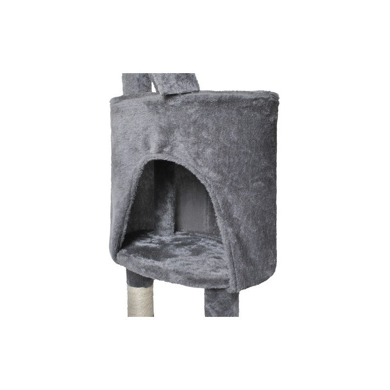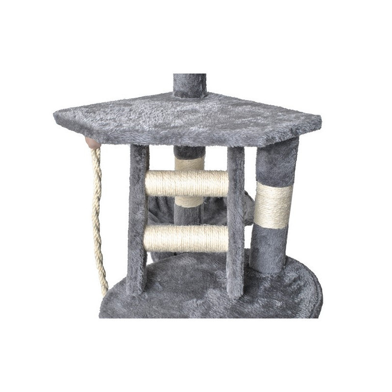 Ez a 4 szintes kaparófa igazi játszótér cicádnak. A 118 cm magasságú fa 4 emeletre van osztva, ahol cicád szabadon mozoghat, lustálkodhat, leselkedhet és játszhat más cicákkal. A széles alap és a masszív konstrukció garantálja a stabilitást. A fa legnagyobb előnye a kényelmes házikó kétlépcsős létrával, ahol cicád pihenhet. A 4. emeleten egy bolyhos egér is található, ami felkelti cicád kíváncsiságát és játékra ösztönzi.