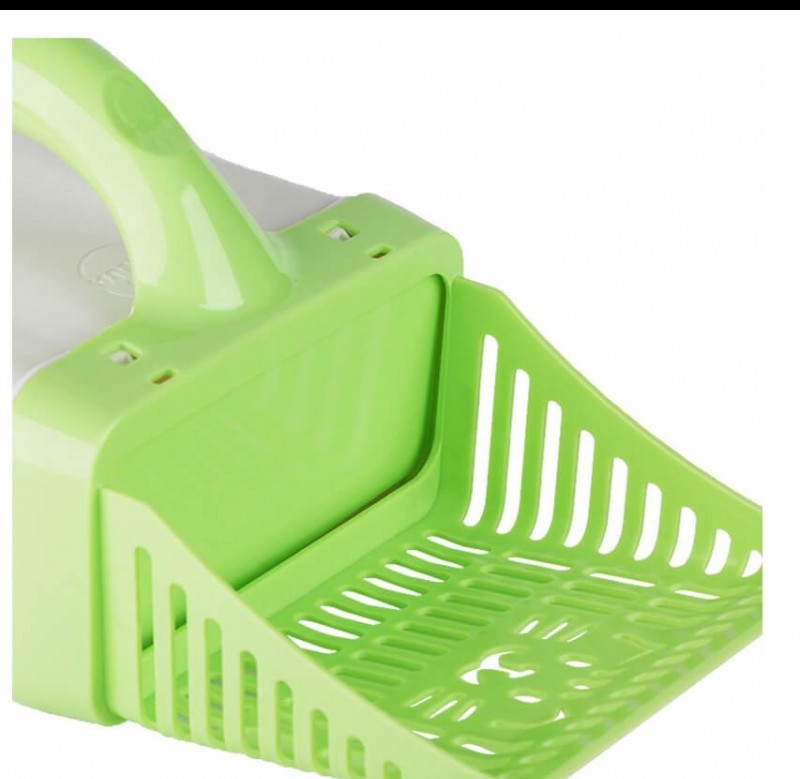 A lapátból egy beépített tároló részbe kerülnek a felcsomósodott alomdarabok. Így könnyedén kidobhatod őket.