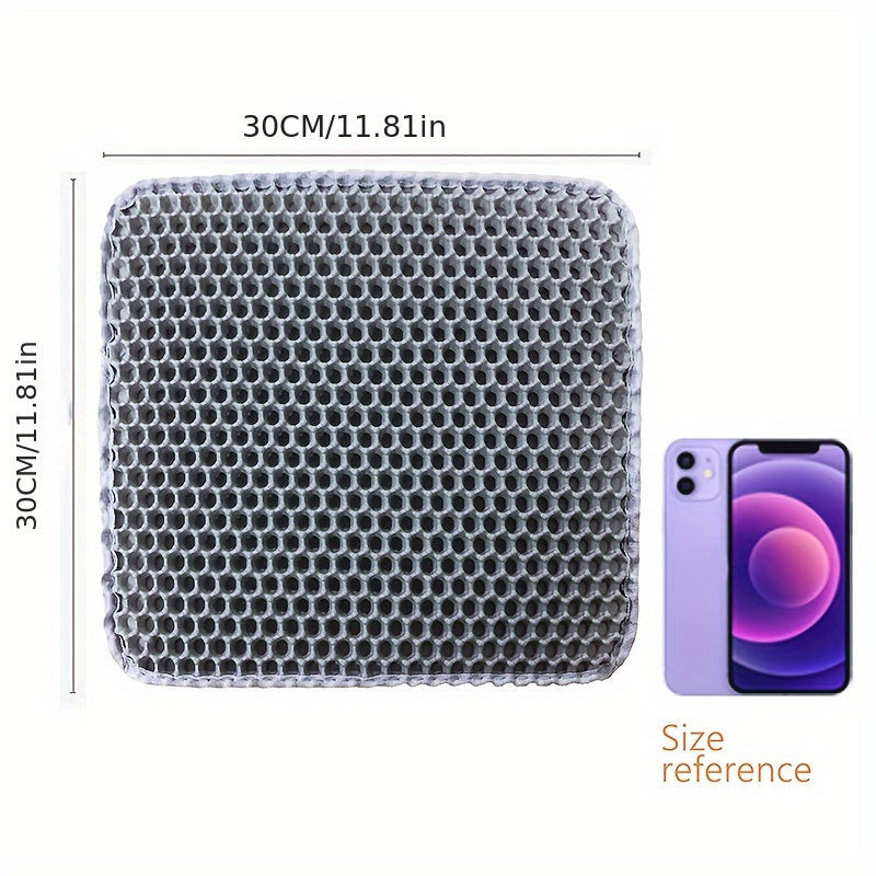 Ha a cicád mindig "valahogy" elszórja a macskaalmot, akkor ezt a Méhsejt mintázatú, kétrétegű szőnyeget imádni fogod! Ez a csúcsminőségű macskaalomhoz való szőnyeg egy újfajta ötlet a cicák WC-jéhez. Az egyedi méhsejt-mintázat megakadályozza a macskaalom szétszóródását és a tisztán tartást egyszerűvé teszi. A nem csúszó felület biztosítja, hogy a szőnyeg biztosan a helyén maradjon. A mosható anyagnak köszönhetően könnyen tisztítható és higiénikus marad.