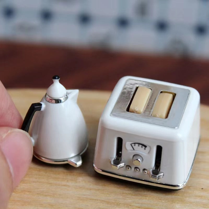 Fedezd fel a mini világ csodáit ezzel a lenyűgöző 1/12 méretarányú kenyérpirító és vízforraló készlettel, amely tökéletesen illeszkedik bármelyik babaház konyhájába vagy diorámába. Ezt a részletgazdag készletet úgy tervezték, hogy a valóságot tükrözze, miközben egy csipetnyi nosztalgiát és varázst visz a miniatűr világba. A kenyérpirító és a vízforraló apró részletei, mint például a valósághű gombok és fogantyúk, valamint az autentikus színválaszték, minden gyűjtőt és babaház-rajongót elbűvölnek.