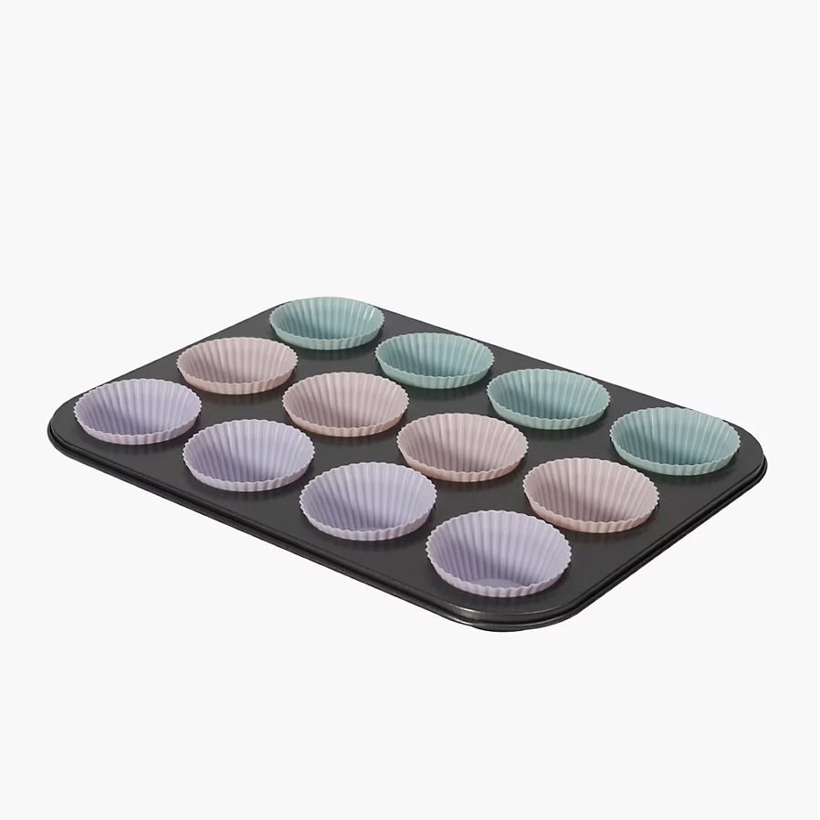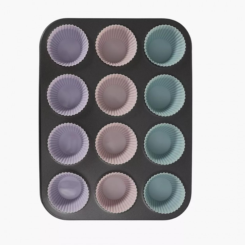 Muffin sütőtálca, sütőlap + 12 db szilikon forma