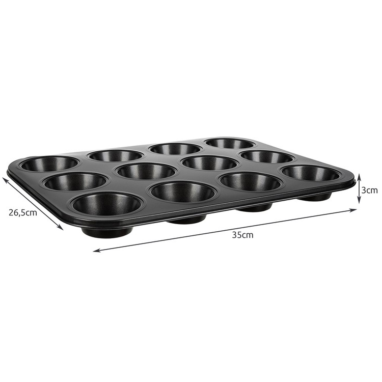 A 3x4-es tálcának minden lyukába fér egy szilikon forma, így gyorsan elkészül egy tucat muffin, ha éppen egy kis édességre vágynál. Tapadásmentes bevonatának köszönhetően nem kell tartanod, hogy a készülendő sütemény beleragadna a teflonba. Anyagából és kialakításából kifolyólag a hő egyenletesen oszlik el rajta, így minden muffin ugyanúgy sül át. A tálcát mosogatógépbe nem ajánlott rakni!