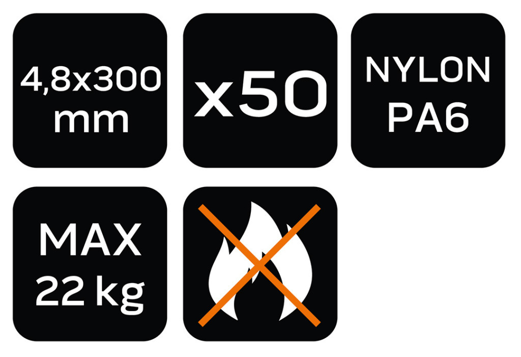 NEO TOOLS Kerti kötegelő, gyorskötöző 4,8x300mm, 50db, barna 15-972