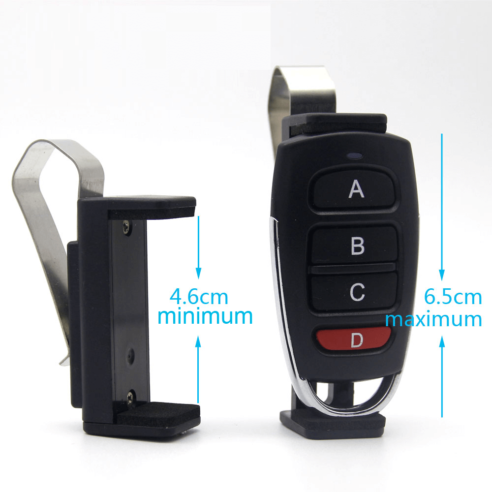 A tartó állítható kialakítással rendelkezik, így szinte minden méretű garázskapu távirányítóval kompatibilis. Telepítése gyors és egyszerű, nincs szükség extra eszközökre. A fekete színű kivitel elegáns megjelenést kölcsönöz autód belterének.