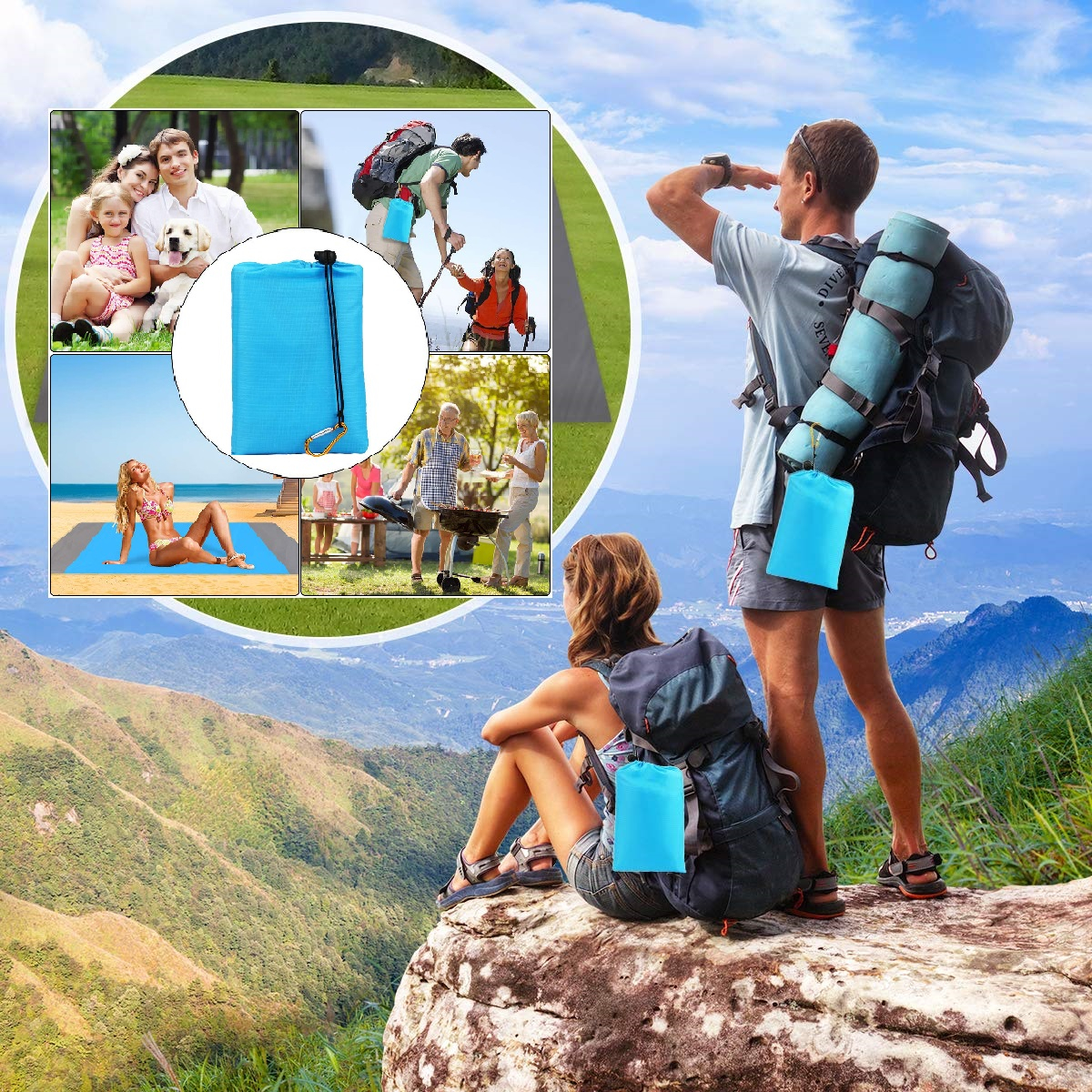 Összehajtható, vízálló strandszőnyeg, piknik takaró