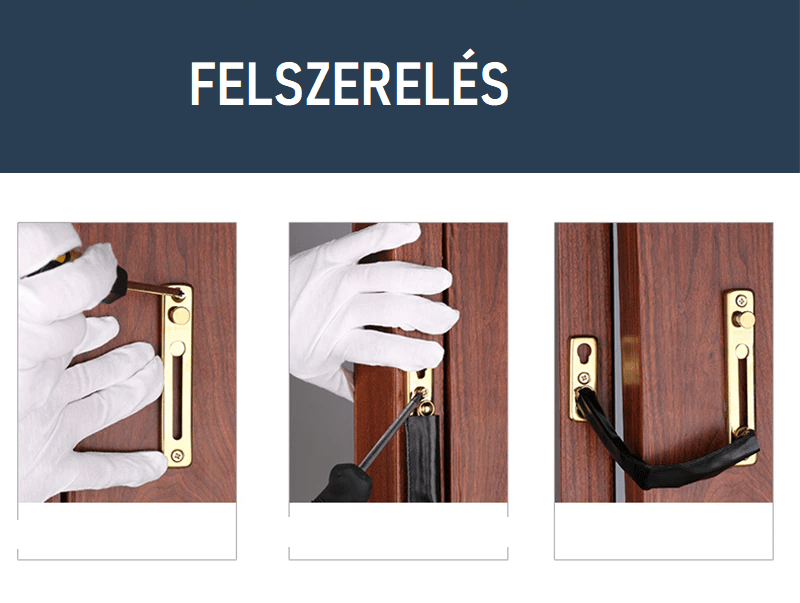 Működése: A lopásgátló ajtólánc lehetővé teszi, hogy csupán részben kinyisd az ajtót a látogatók azonosításához vagy csomagok fogadásához. Könnyen felszerelhető az ajtóra, alkalmas minden méretű faajtóhoz.