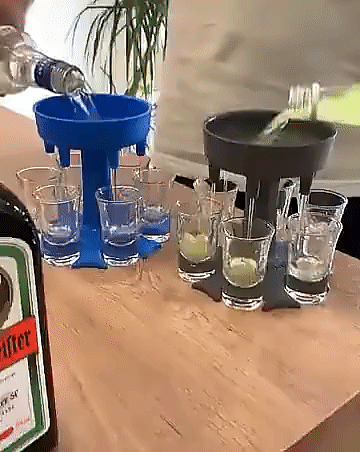 A használata nagyon egyszerű, csupán a kütyü alá kell helyezned a poharakat, bele kell töltened az italt a tartályba és élvezni az igazságos osztozkodást!