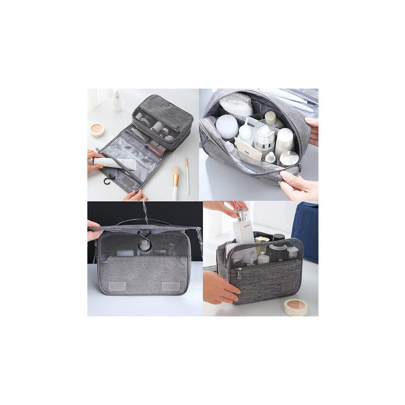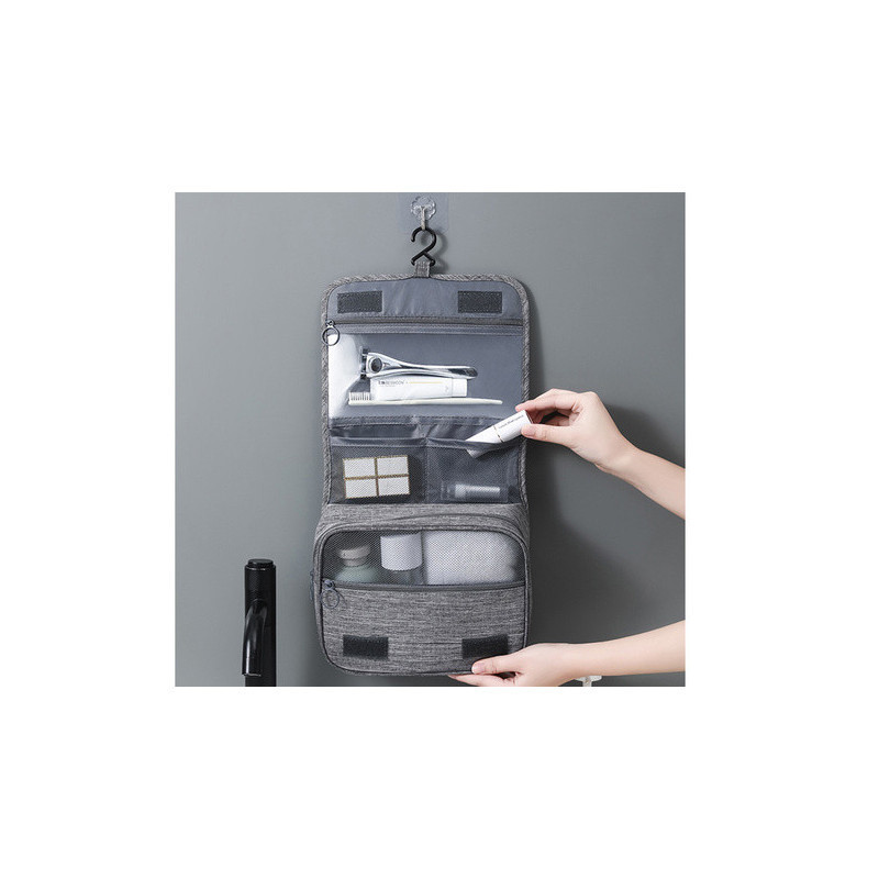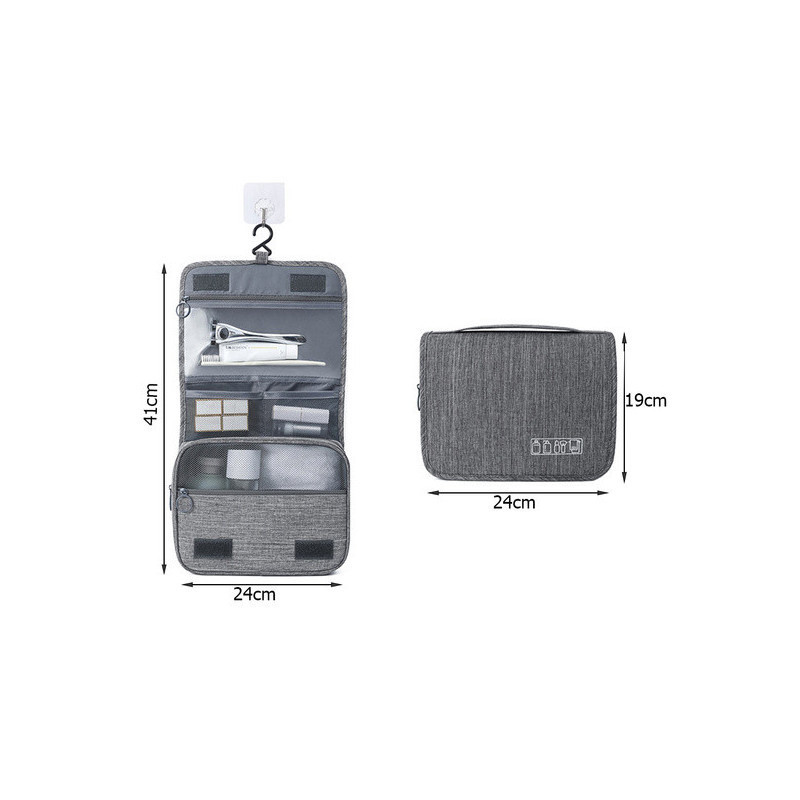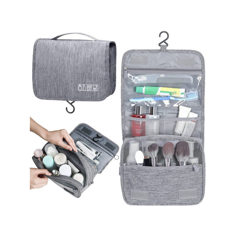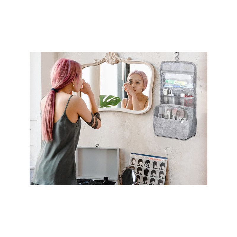 A függő kozmetikai táska az ideális megoldás azért, hogy rendben tartsd a kozmetikumaidat. Tökéletes megoldás mind a férfiaknak, mind a nőknek. Felakaszthatod a fürdőszobába, és magaddal viheted utazásra szükség esetén. Nagyon tágas, számos hasznos kozmetikumot képes tárolni, amire mindennaposan szükséged van, mint például sampon, fogkefe, hajlakk, ecsetek stb.