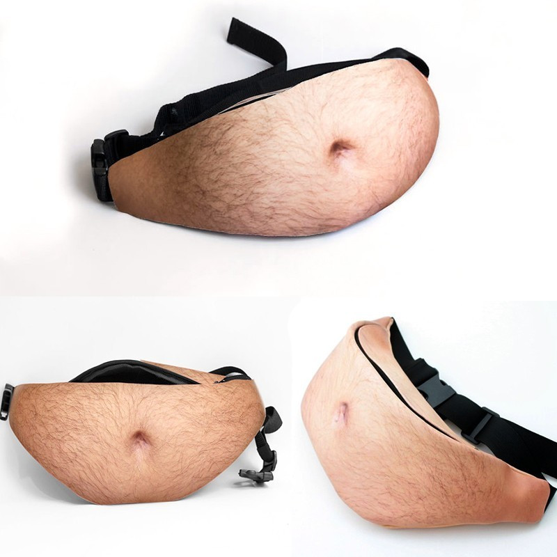 A sörhas táska cipzározható, pakolhatsz bele telefont, kulcsot, fülhallgatót, pénztárcát, papírzsebkendőt, mint egy sima övtáskába. Mintája élethűen visszaadja a szőrös sörpocakot, amiről csak akkor derül ki a turpisság, ha közelebbről is megnézik.