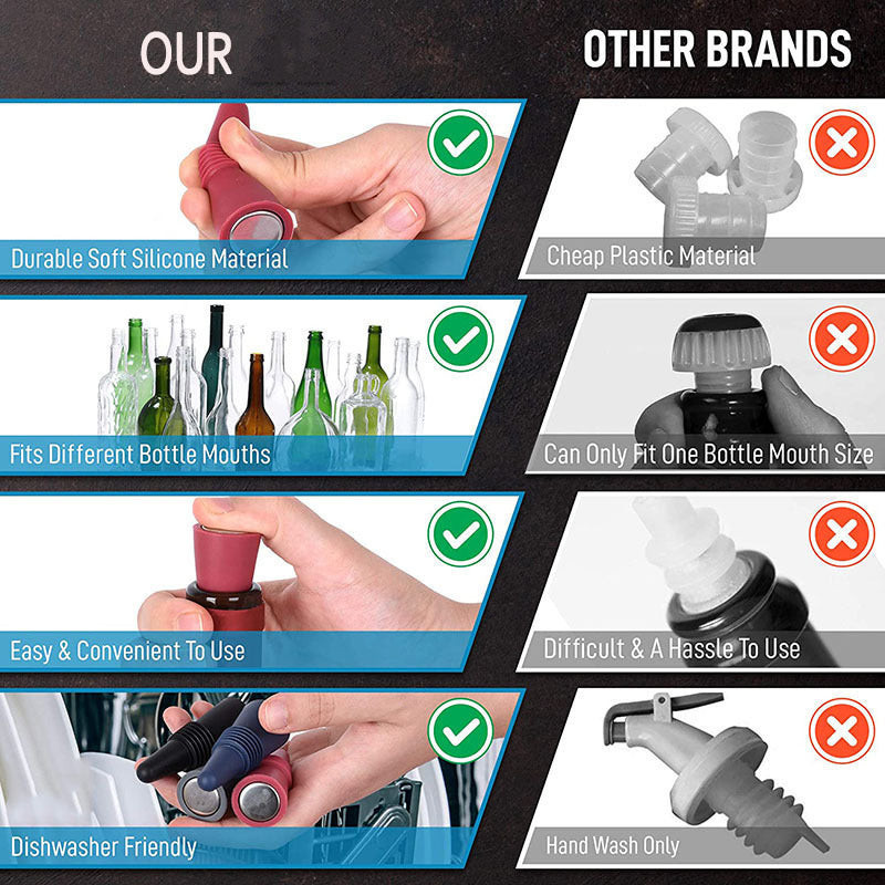A szilikon borosüveg dugó egy tökéletes választás, ha szeretnéd frissen tartani a kedvenc italaidat! Ezek a szivárgásmentes dugók ideálisak a whiskey, sör, pezsgő és borpalackokhoz egyaránt. Az egyszerű, mégis stílusos dizájnja révén mindenki oda lesz érte! ✨
