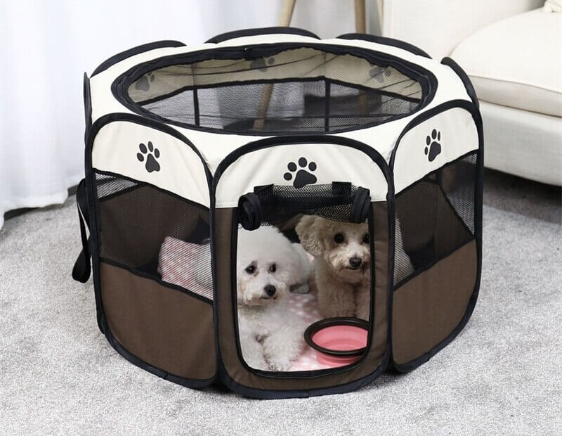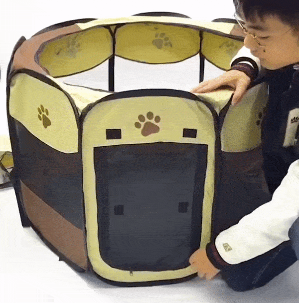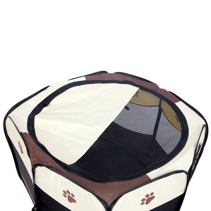 Ha vendégek érkeznek hozzád és nem szeretnéd, hogy kutyusod szabadon járkáljon az ebédlőasztal körül, a mobil kennel lesz a tökéletes megoldás. Csak egyszerűen állítsd fel a pihenőhelyet kiskutyád számára a szoba egyik szegletében, és a cipzáros bejáratnak köszönhetően Te szabályozhatod kijárását onnan.