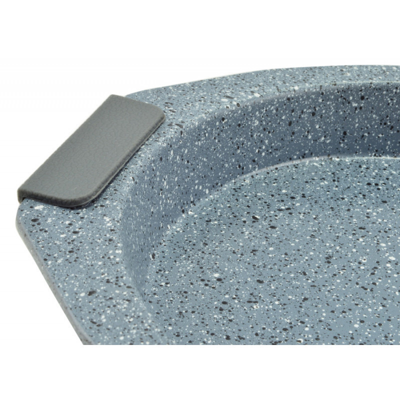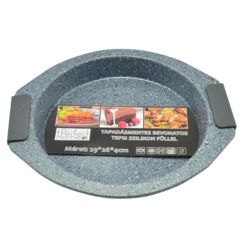 Tapadásmentes bevonattal ellátott acélból és szilikon füllel rendelkező tepsi, amely ideális választás a kisebb torták, lasagne, krumpli és egyebek sütéséhez. A tepsi anyaga könnyen tisztítható meleg mosószeres vízzel, és mosogatógépben is mosható. Első használat előtt és minden használat után szükséges alaposan tisztítani és szárazra törölni. Fontos, hogy a bevonatot nem szabad vágni, mert ez károsíthatja a tepsi felületét. A sütés és főzés során ajánlott fa, műanyag vagy szilikon eszközöket használni, mert a fém eszközök megsérthetik a bevonatot. A tepsi alkalmas gáz- és elektromos sütőben való felhasználásra. A termék mérete: 26,6 cm külső átmérő, 21 cm belső átmérő, 3,5 cm magas, 29,3 cm széles fülekkel együtt. A termék súlya 345 g.