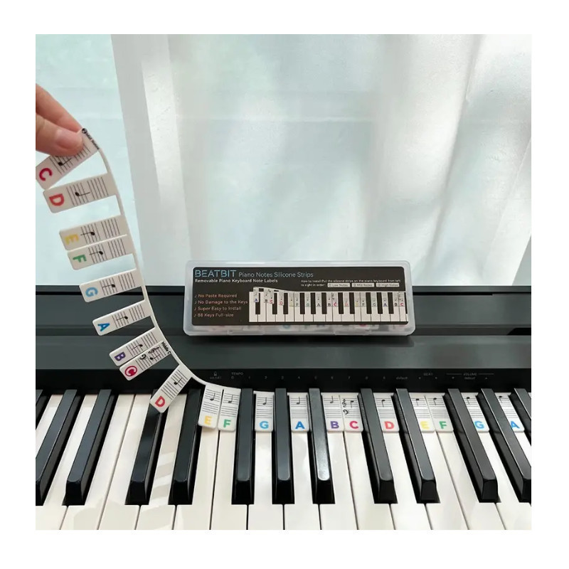 Könnyen felhelyezhető és könnyen eltávolítható maradványok nélkül a billentyűzet tisztán és rendben tartható. Minden billentyű hangjegyének megtalálásában segít, hogy gyorsan megtalálhasd. Szabványos méretű 88 billentyűs zongorákhoz illeszkedik.
