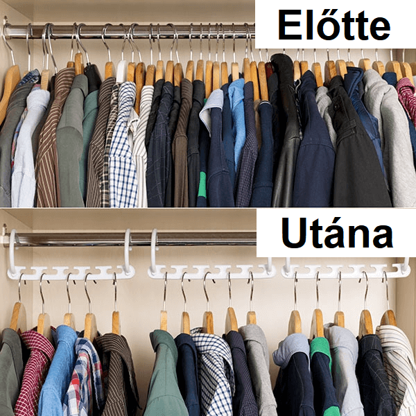 Egyszerű, praktikus és gazdaságos megoldás a ruhatár szervezésének optimalizálására! Ez a ruhaállvány helyet takarít meg a szekrényedben, és lehetővé teszi, hogy gyűrődés nélkül rendezd ruháidat. A ruhafogas kampója 360°-ban szabadon forgatható, amely különböző szekrényrudakhoz is alkalmazható. Ezáltal megakadályozhatod, hogy ruháid összeérjenek, így hamarabb száradnak. A szettben található 8 db rendszerezőn 5-5 lyuk található, így összesen 40 ruhát tudunk ráakasztani.