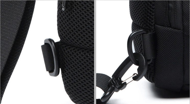 A vállrésznél egy kis rejtett tartó található, ahol tárolhatod a bankkártyádat, bérletedet, vagy bármi egyebet is. A hátrésznél is található így rejtett cipzáros zseb, amelyből garantáltan nem veszi ki senki az értéket, ha rajtad van. Egy pánttal, de két rögzítővel rendelkezik a táska alján, jobb és bal oldal, hogy mindkét oldalú hordást támogassa.
